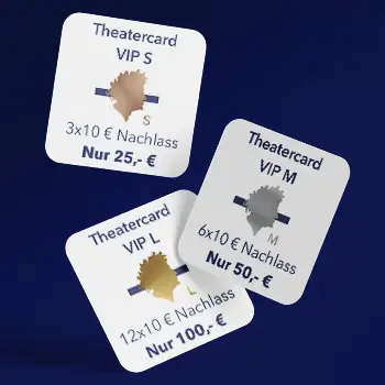 Mit der Theatercard S bekommen Sie insgesamt 3 x 10 Euro Nachlass. Die Karte kostet Sie 25 Euro.